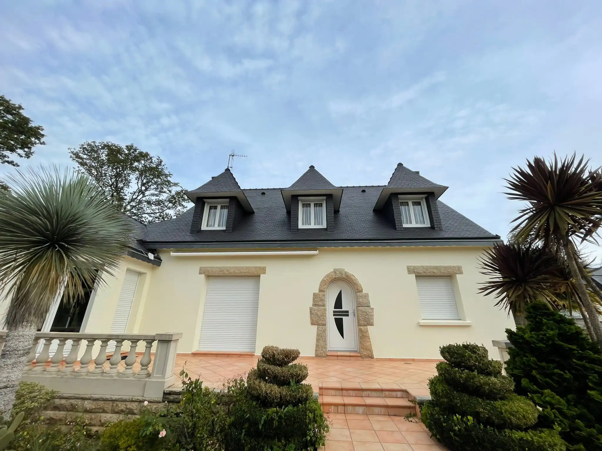 Chaque projet débute par une analyse détaillée de l’état de vos façades : nature du support (pierre locale, enduit ciment ou chaux, bardage, ardoise), pathologies visibles (fissures, salissures, infiltrations) et contraintes propres au climat mayennais (hivers froids, humidité persistante). Cette étape garantit la mise en place d’un plan de rénovation adapté.